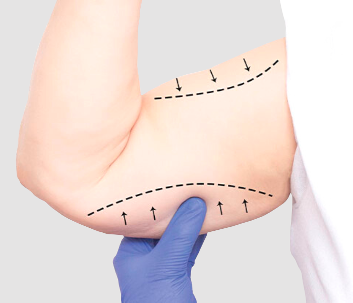 On the day of your operation, your doctor will begin by identifying the areas on your arm where incisions will be made. The most typical method is to make incisions on the inside or back of your arms. Depending on what the surgeon determines, other alternative incisions include an armpit incision or one that reaches from the top of your elbow to your armpit.